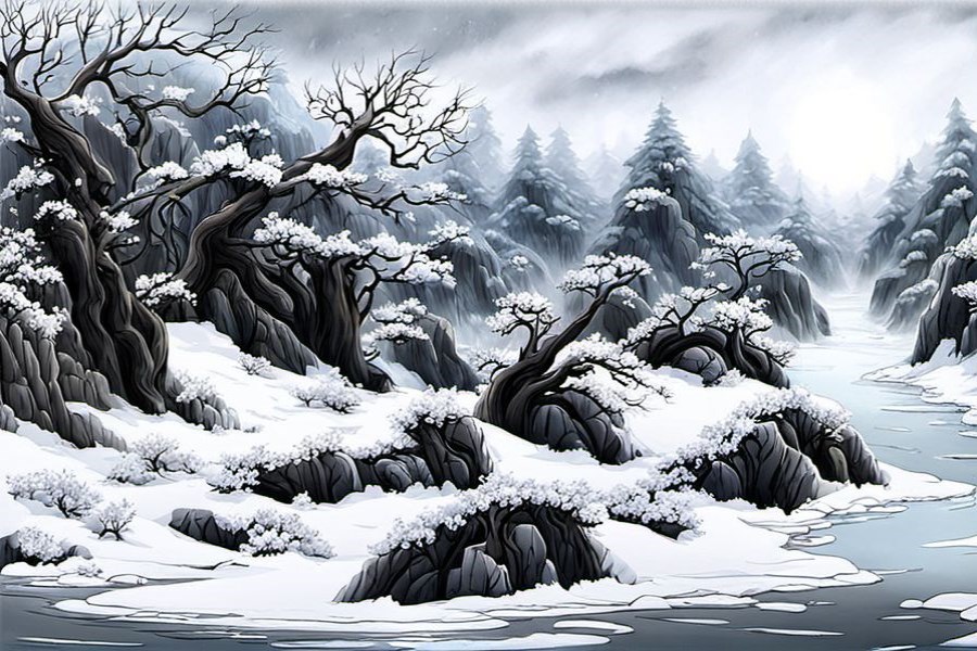 雪雁 在雪花中飞舞的飞雁。